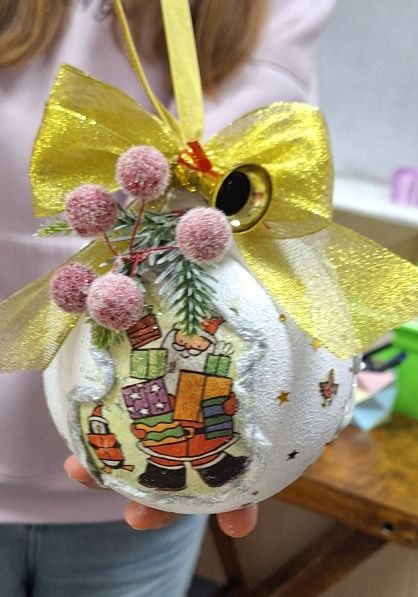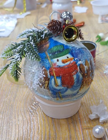 Создание эксклюзивной новогодней игрушки – новогоднего шара, а также праздничной атмосферы в преддверии Нового года вызвало у детей и их родителей большой восторг. Особо полюбилась заводчанам техника декорирования новогоднего шара «Декупаж».