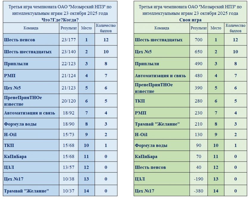Третья игра чемпионата ОАО «Мозырский НПЗ» по интеллектуальным играм Опубликовано 28.10.202528.10.2025 от ППО