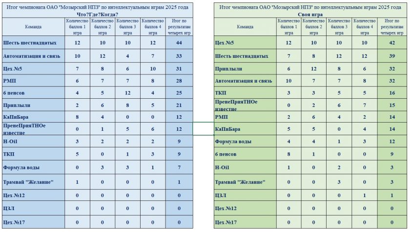 • Результаты Чемпионата и Кубка